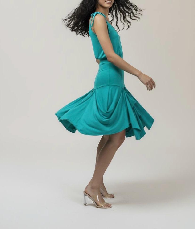 The rich Aqua hue evokes calm, sophistication, and timeless femininity, making this dress a standout piece in any wardrobe.