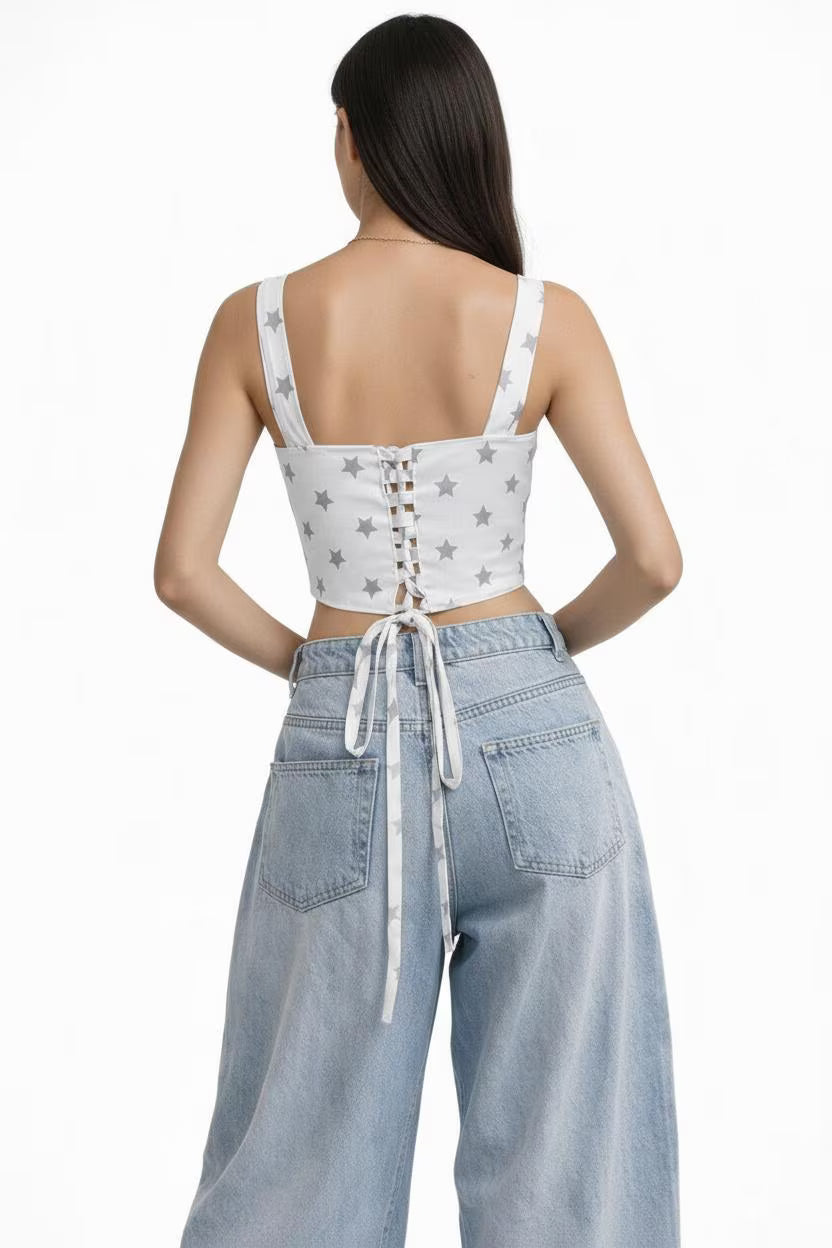 The adjustable lace-up back lets you customize the fit exactly how you like it, offering light shaping without restriction. The clean front silhouette pairs perfectly with high-waisted jeans, skirts, or layered looks, making it an easy go-to for both casual and elevated outfits.