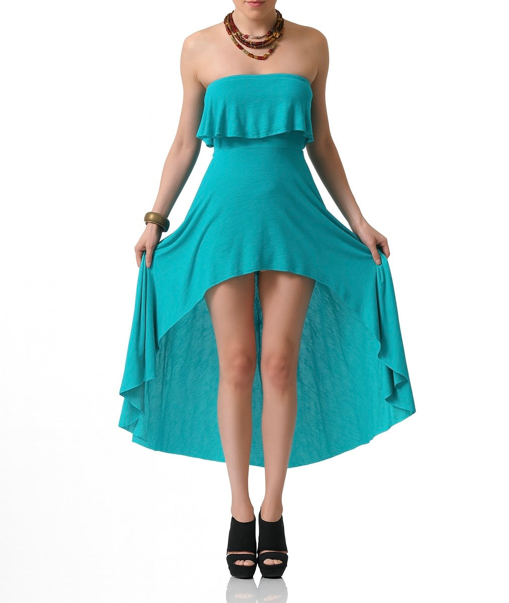 Strapless Hi-Low Dress: Flounce Hem Flowy Summer Dress
