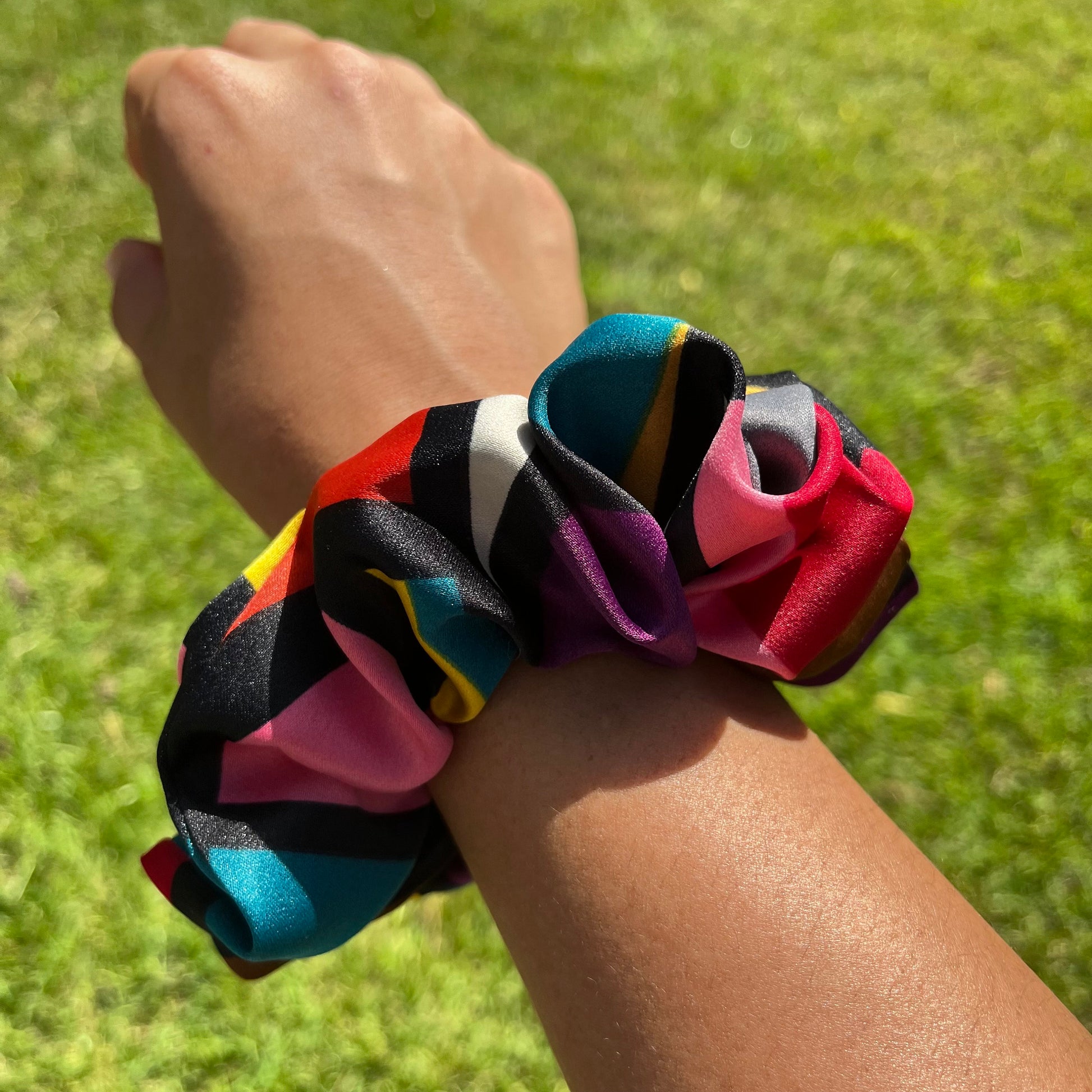 90s Inspired Colorful Scrunchie: Handmade Polyester Hair Fashion
