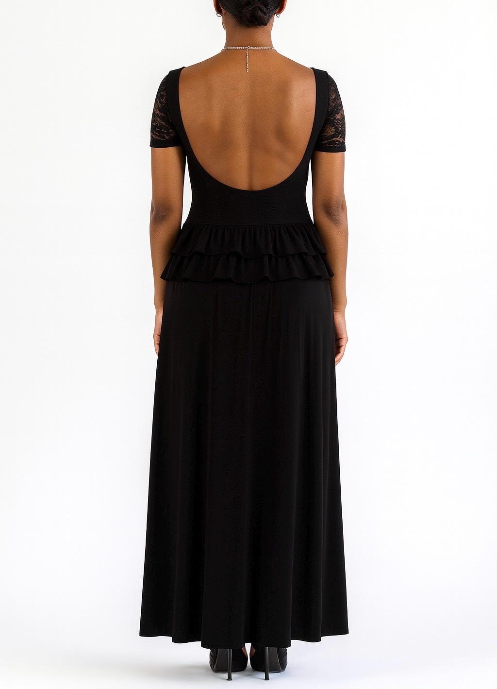 Agnes Black Maxi Dress with Peplum Ruffles-Size S