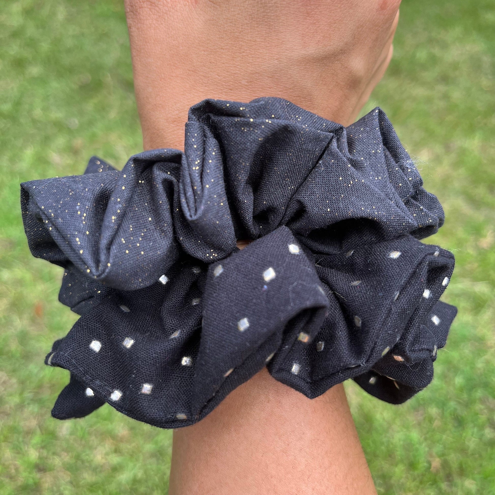 Black Festive Cotton Scrunchie: Holiday Hair Accessory