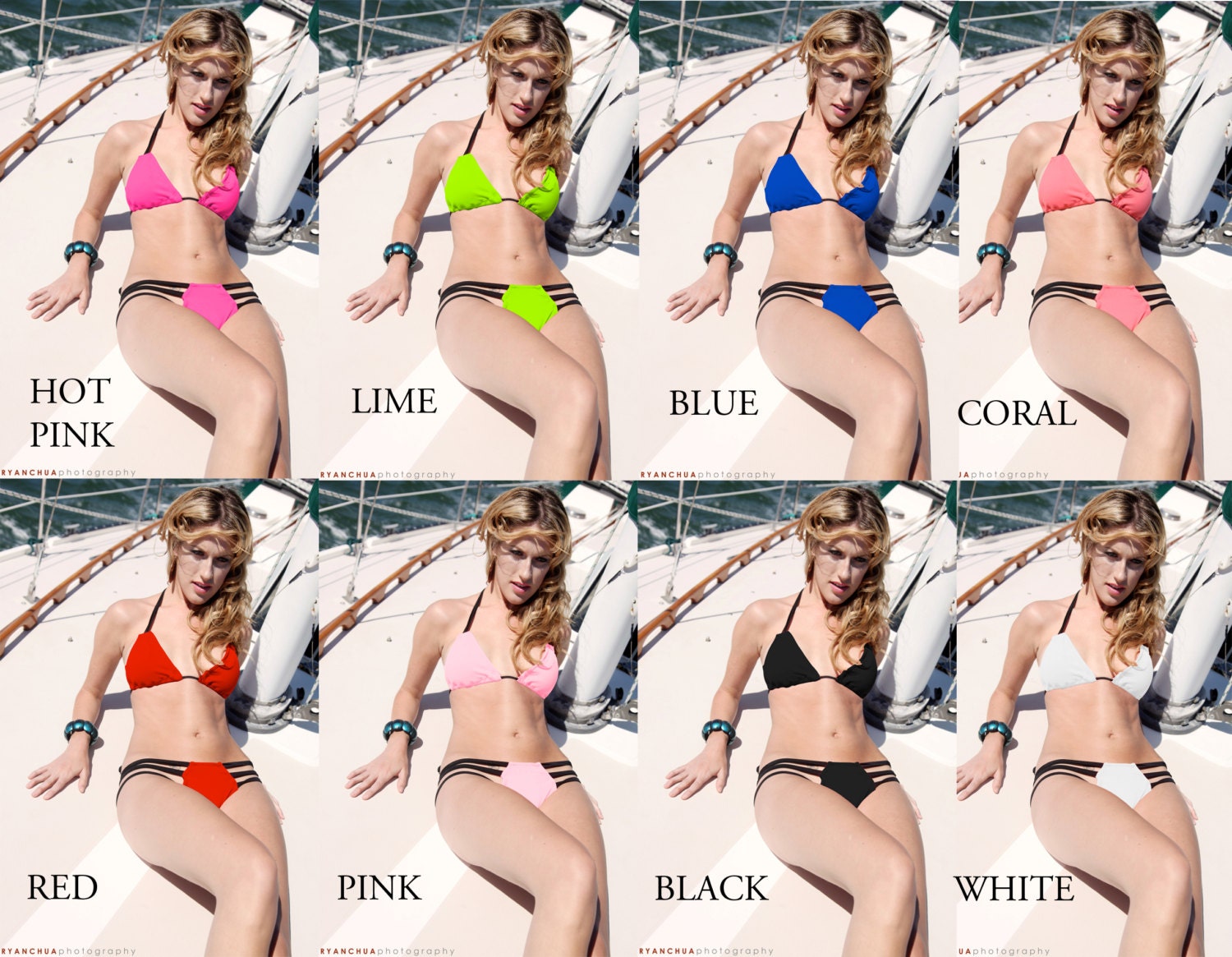 Exotic straps featured on both sides of the bottom bikini gives off sexy vibes and shows off your skin in an alluring kind of way. A simple bikini transformed into an exotic piece of heaven on the body. No padding, Lined. Can be worn crisscross with straps of the top around the neck or tied like a halter.
