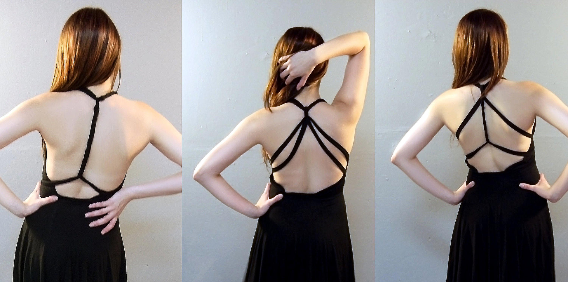 The Convertible LBD is perfect for those date nights and takes the "Little Black Dress" to new heights with convertible multi-wear. Can be tied to wear in different was for a sexy back for a more contemporary look.