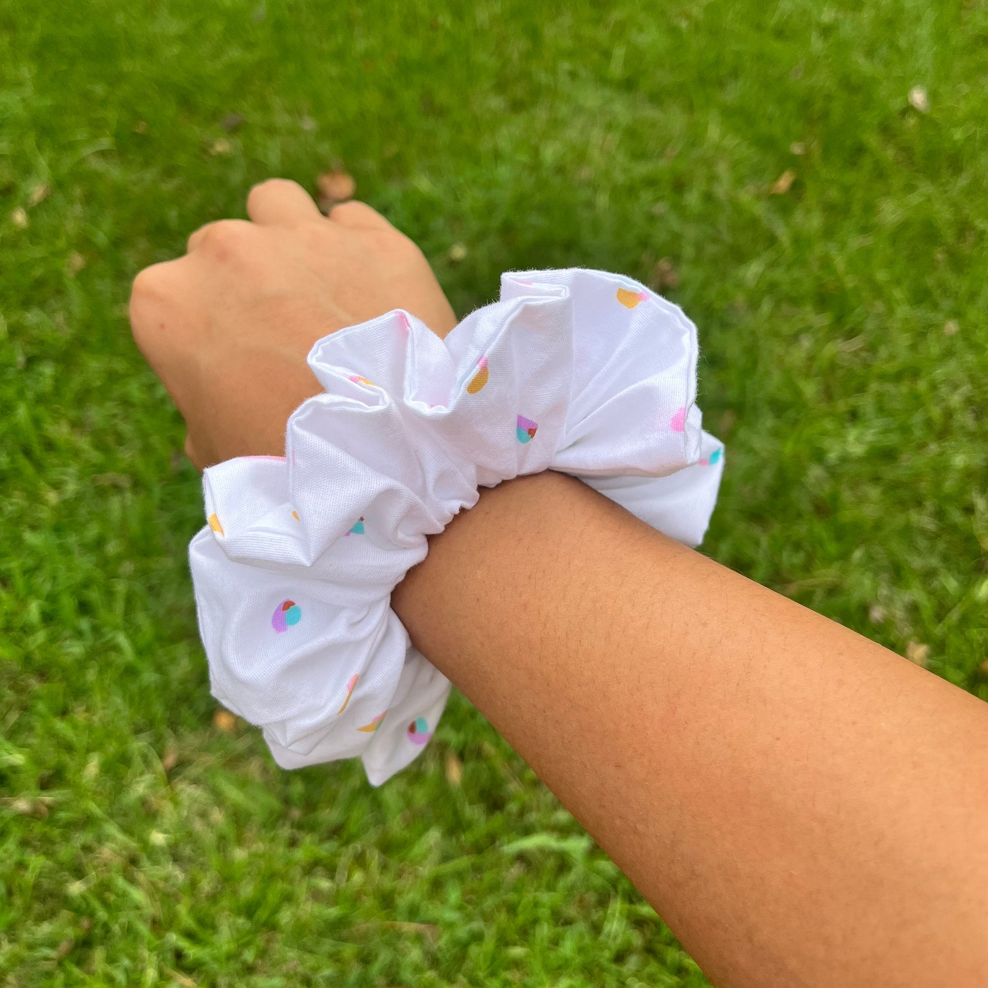 This scrunchie set features three stylish hair accessories. You can buy the individual ones or the set. The scrunchies are designed with one that has Poobear pattern, Today is beautiful Pattern, and Ice Cream Pattern. They are perfect for adding a trendy touch to your hair do! These must have cute colors are made with high quality premium Cotton fabrics and made for both kids and adults alike. Great for curly, straight, or thick hair, as well as heavy hair types for a carefree up or down style. Can be wrapped around the hair once or twice. -Handmade in the USA -Content: Cotton Fabric Care: Hand wash or machine wash cold, tumble low dry, or air dry, steam to get wrinkles out or cool iron on edges. No Bleach.