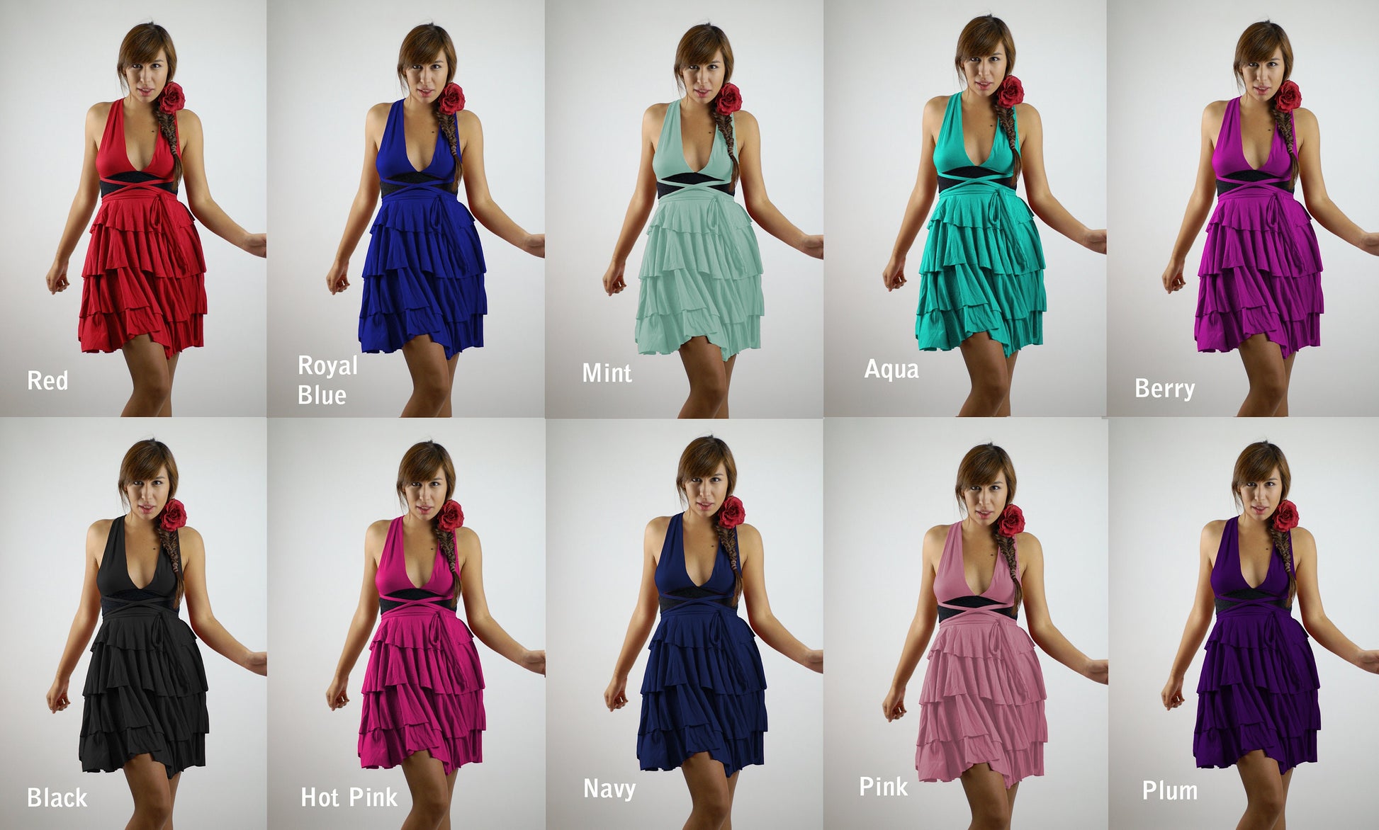 This Tiered Mult. layered dress has 4 layers of ruffle flounces attached to the waist. There is a Black Waist band to break up the color, giving it a color block effect. The Straps are super long to allow for multi. way wear which gives you endless possibilities and multiple ways to wear one dress. The dress is sewn in our softest and most comfortable jersey knit fabrics and feels like butter on the skin. Great dress for vacation and summer fun.