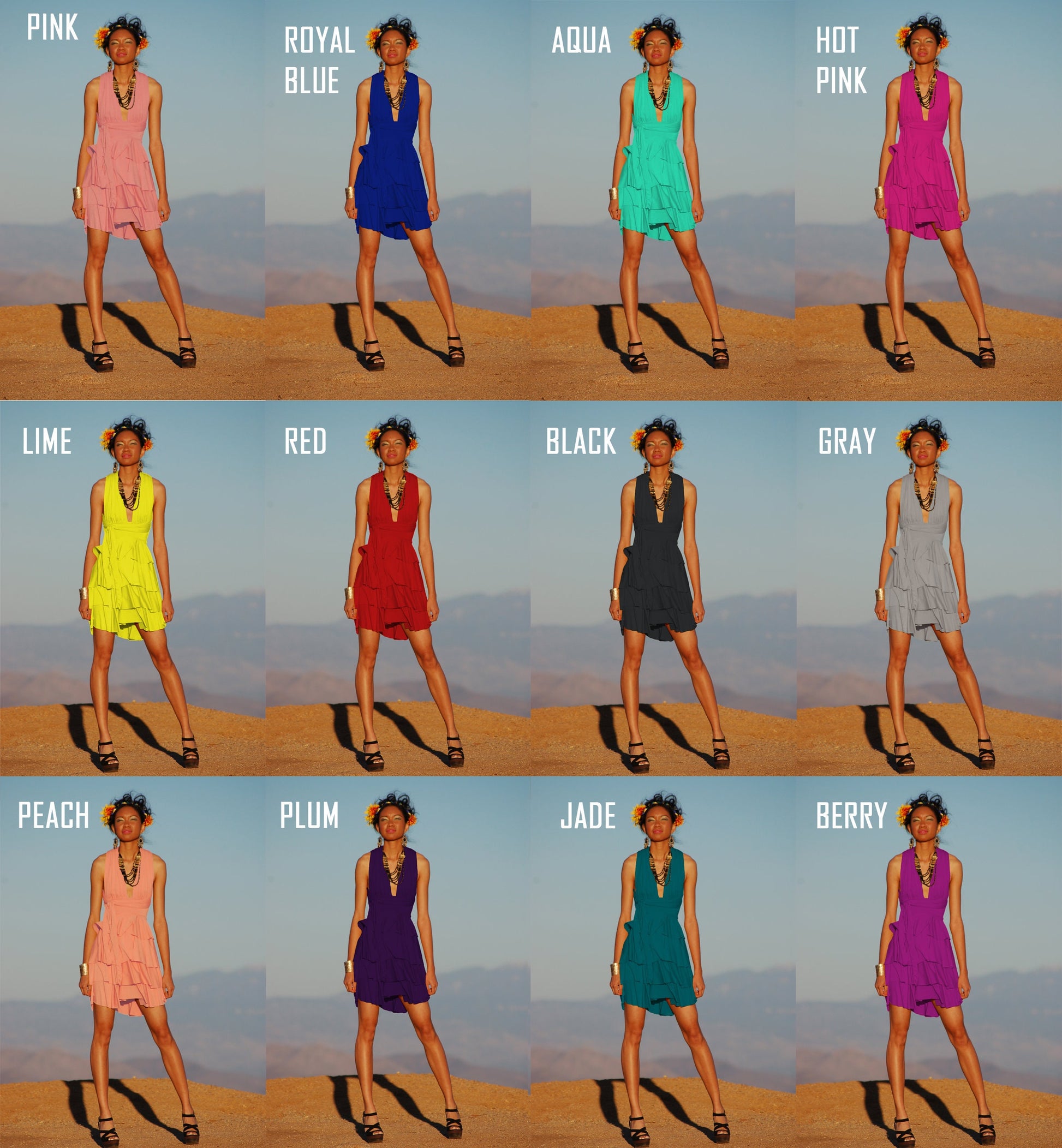 Flirty and fun with multi. layered frills adorned in the skirt, this piece is versatile and can be worn many ways. Infinity straps makes this one dress into many and can be worn multiple ways. Straps are wider for greater coverage. Super fun to wear whether you are going out dancing, to a wedding, or date night with your significant other.