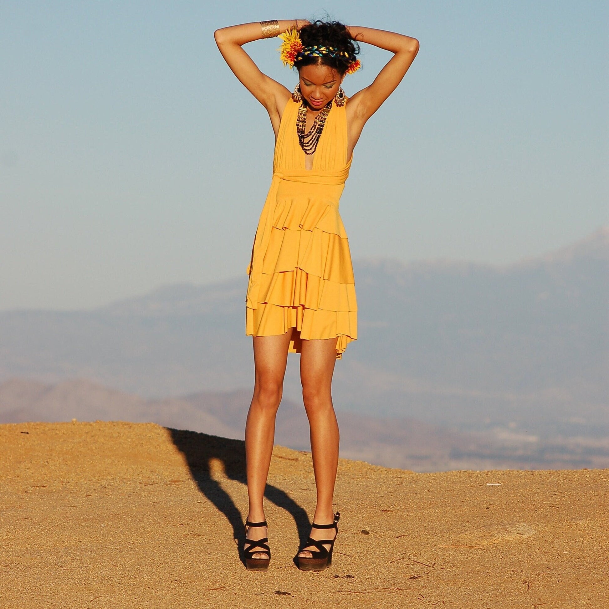Tiered Ruffle Mini Dress: Infinity Tie Straps, Handmade in USA