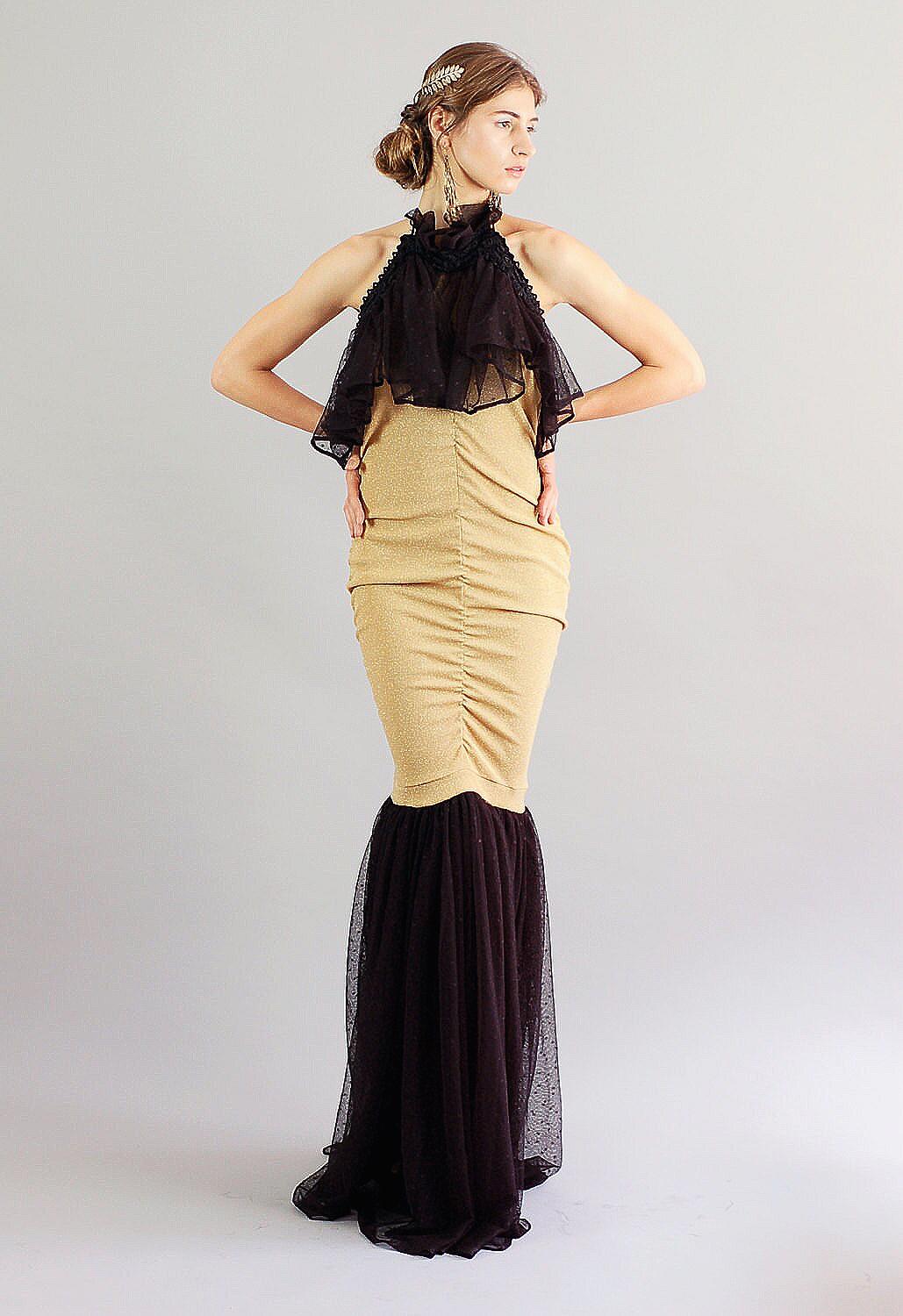 Beatrice Gold and Black Long Maxi Gown-Size M/L