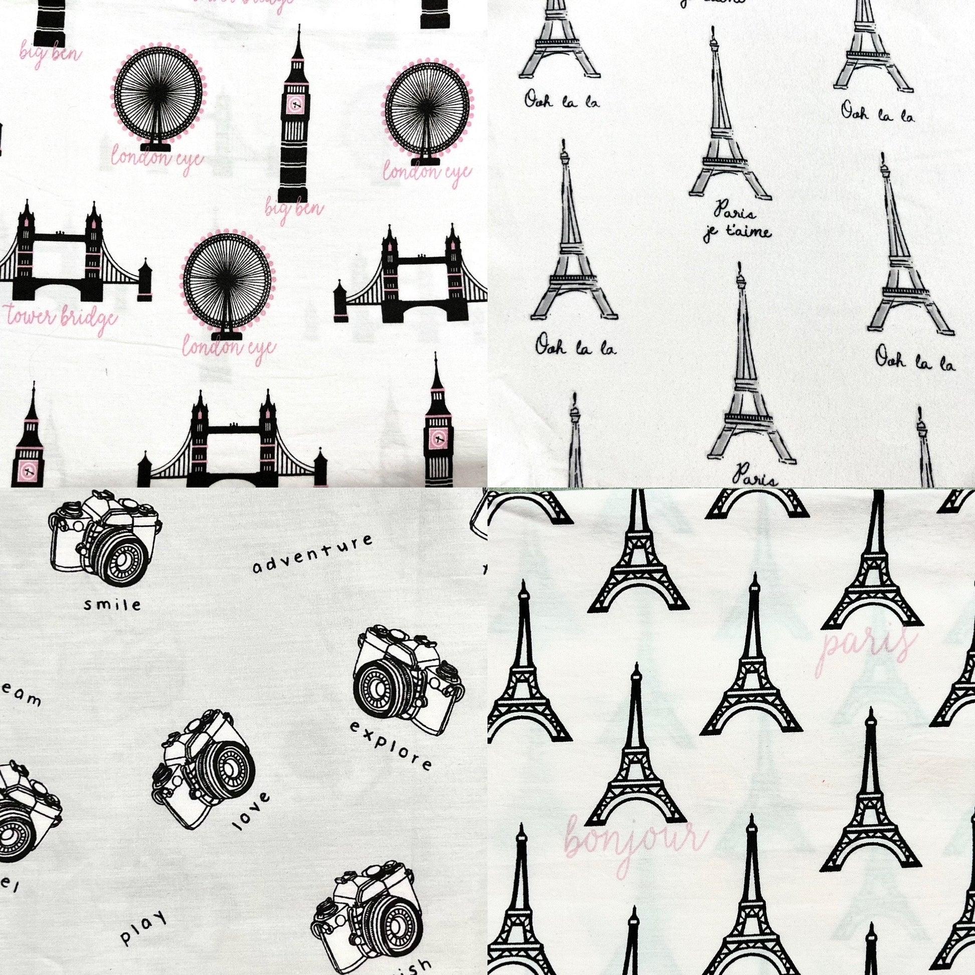 World Traveler Cotton Scrunchie Set: Paris, London Prints